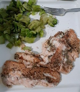 This is a perfect dinner for a white wine or a romantic evening. The salmon is tender and savoury and the broccoli compliments the taste nicely. Don’t forget to add a squeeze of lemon before eating for that perfect blend of flavour.
